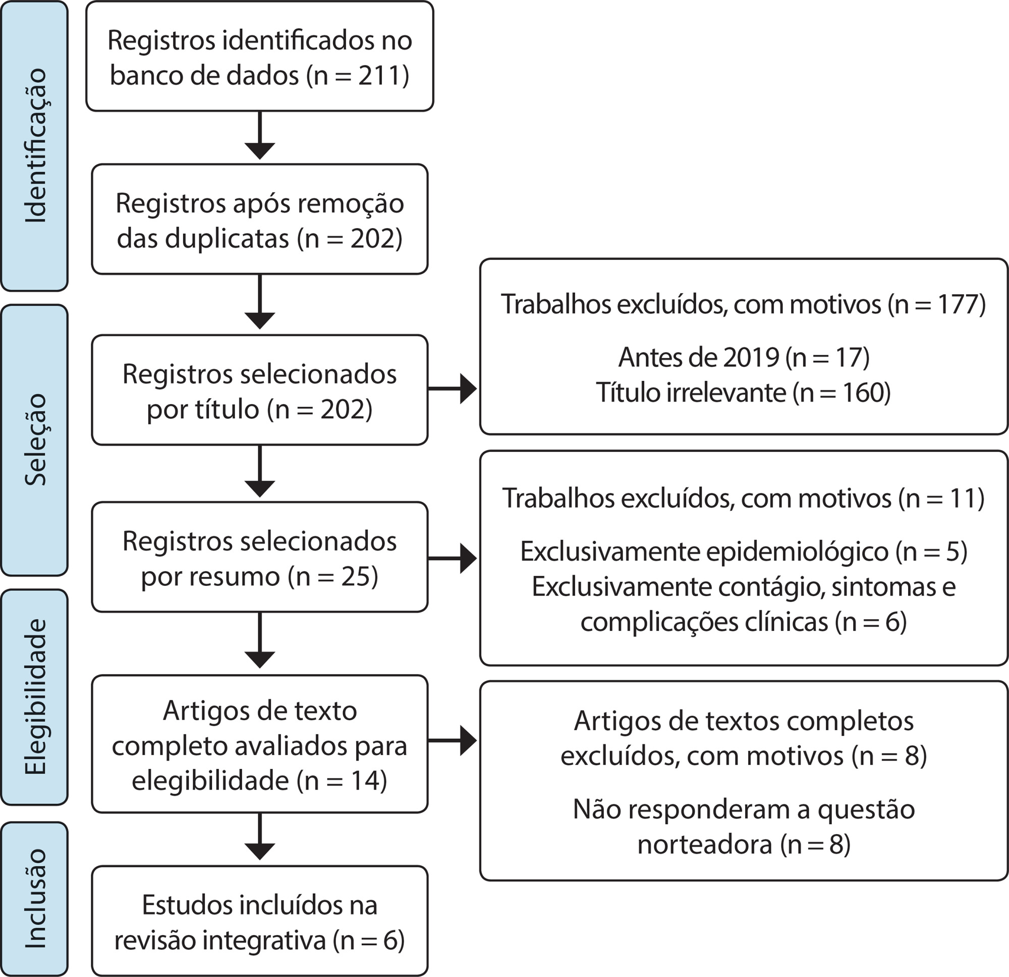 Trata-se de revisão integrativa da literatura, realizada em março de 2020. Foram investigadas todas as bases de dados e encontrados estudos somente na MEDLINE. Após a aplicação dos critérios estabelecidos, foram selecionados seis artigos.