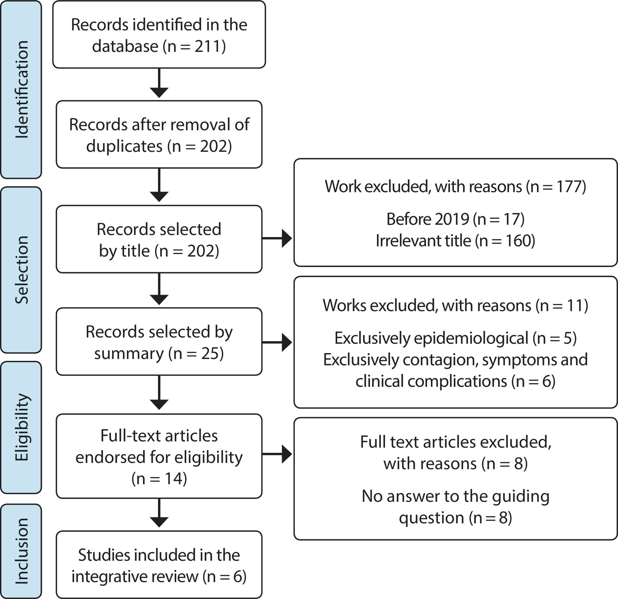 This is an integrative literature review, which took place in March 2020. All databases were investigated and studies were found only in MEDLINE. After applying the established criteria, six articles were selected.