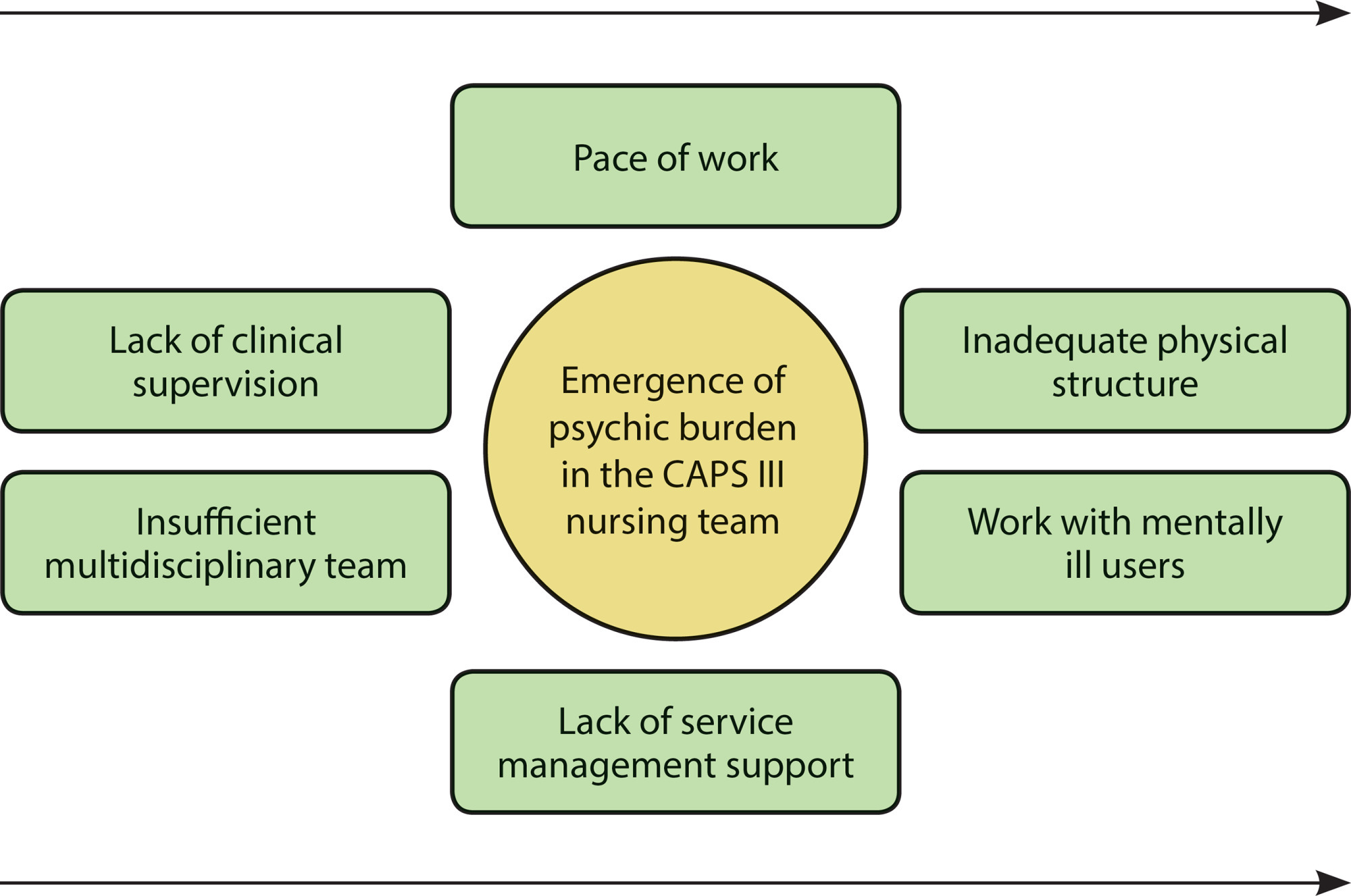 the factors that trigger psychic burden arise primarily from pace of work, precarious physical structure, work with users in mental distress, lack of management support, insufficient multidisciplinary team and lack of clinical supervision.